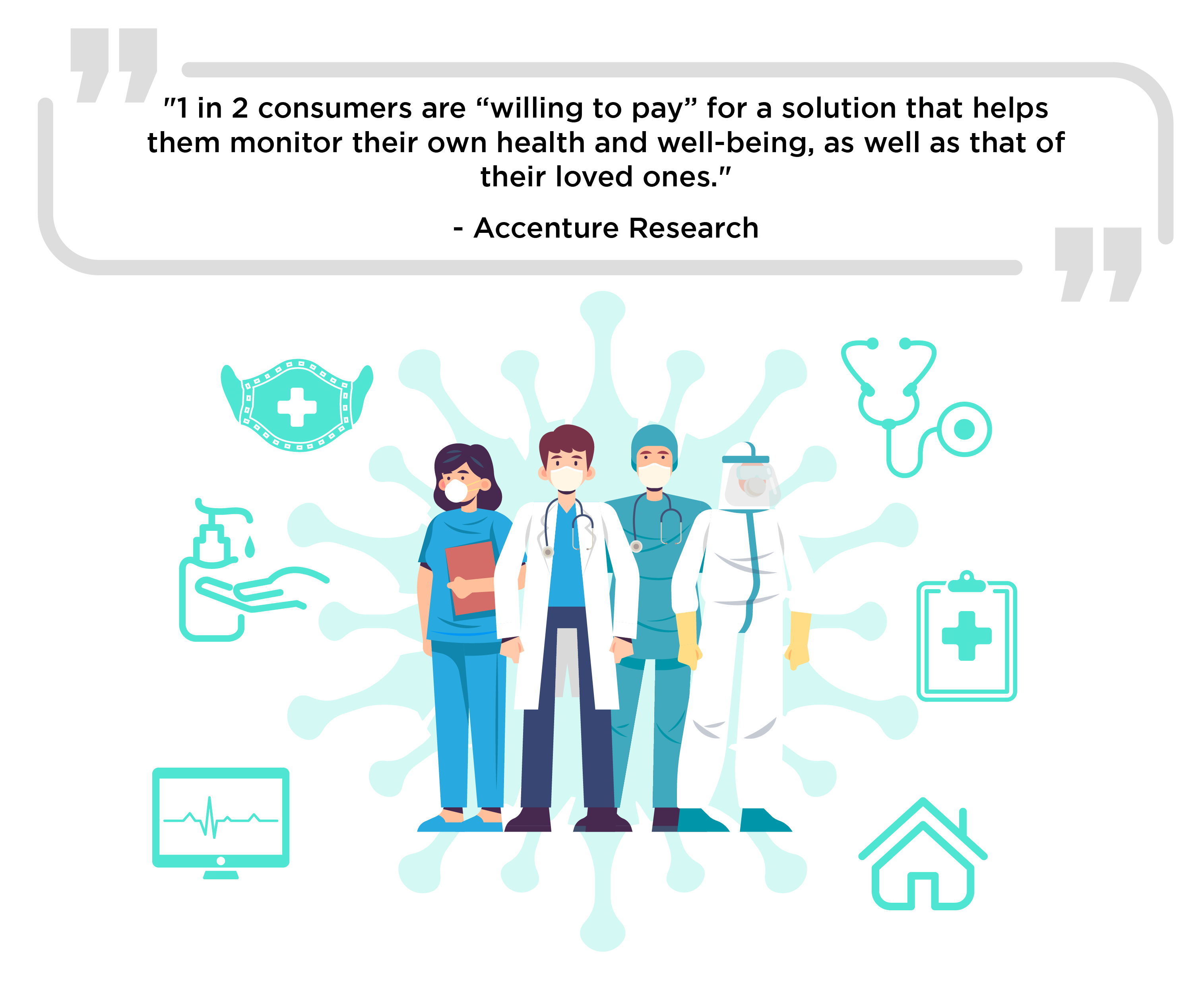 - 1 in 2 consumers are “willing to pay” for a solution that helps them monitor their own health and well-being, as well as that of their loved ones.27