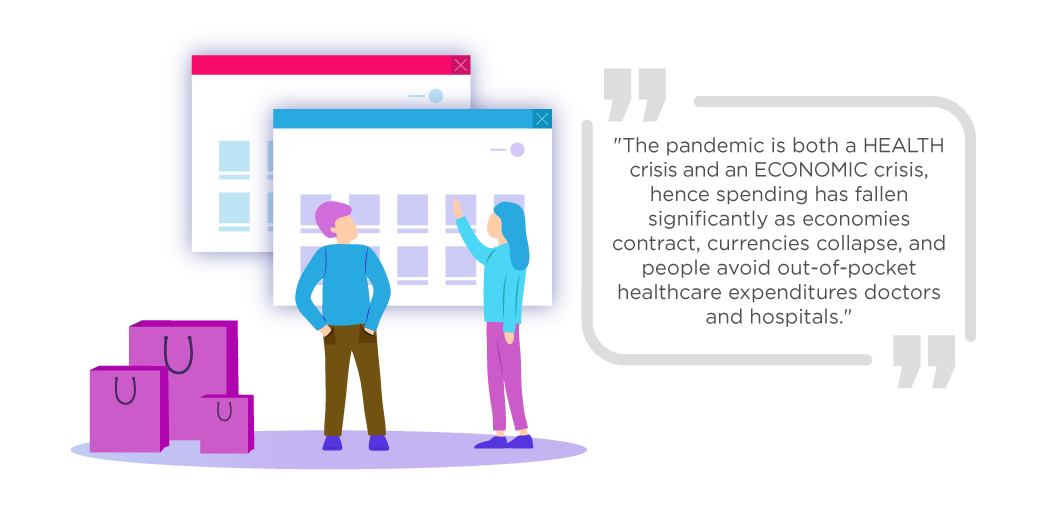 That is partly due to the fact that the pandemic is both a HEALTH crisis and an ECONOMIC crisis, hence spending has fallen significantly as economies contract, currencies collapse, and people avoid out-of-pocket healthcare expenditures for doctors and hospitals. The good news is that healthcare spending is expected to recover by H2 2020 moving forward.